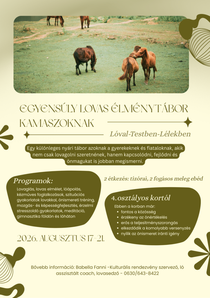 Egy különleges nyári tábor azoknak a gyerekeknek és fiataloknak, akik nem csak lovagolni szeretnének, hanem kapcsolódni, fejlődni és önmagukat is jobban megismerni.