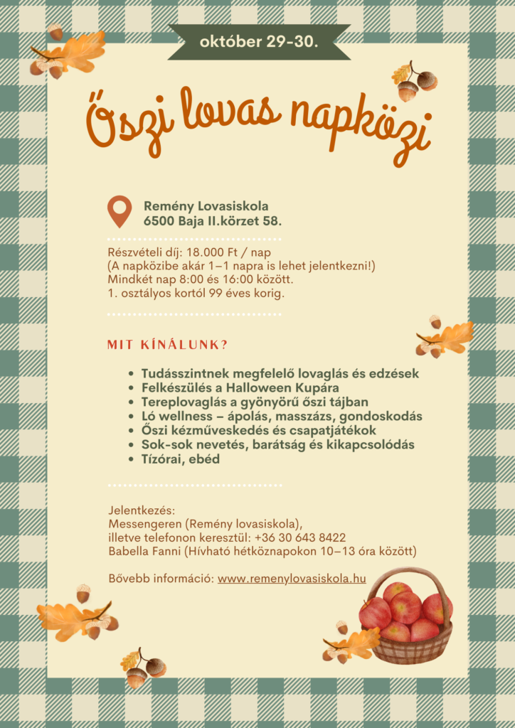 Szeretettel várunk minden lovast és lórajongót október 29-én és 30-án egy különleges, élményekkel teli lovas őszi napközibe!